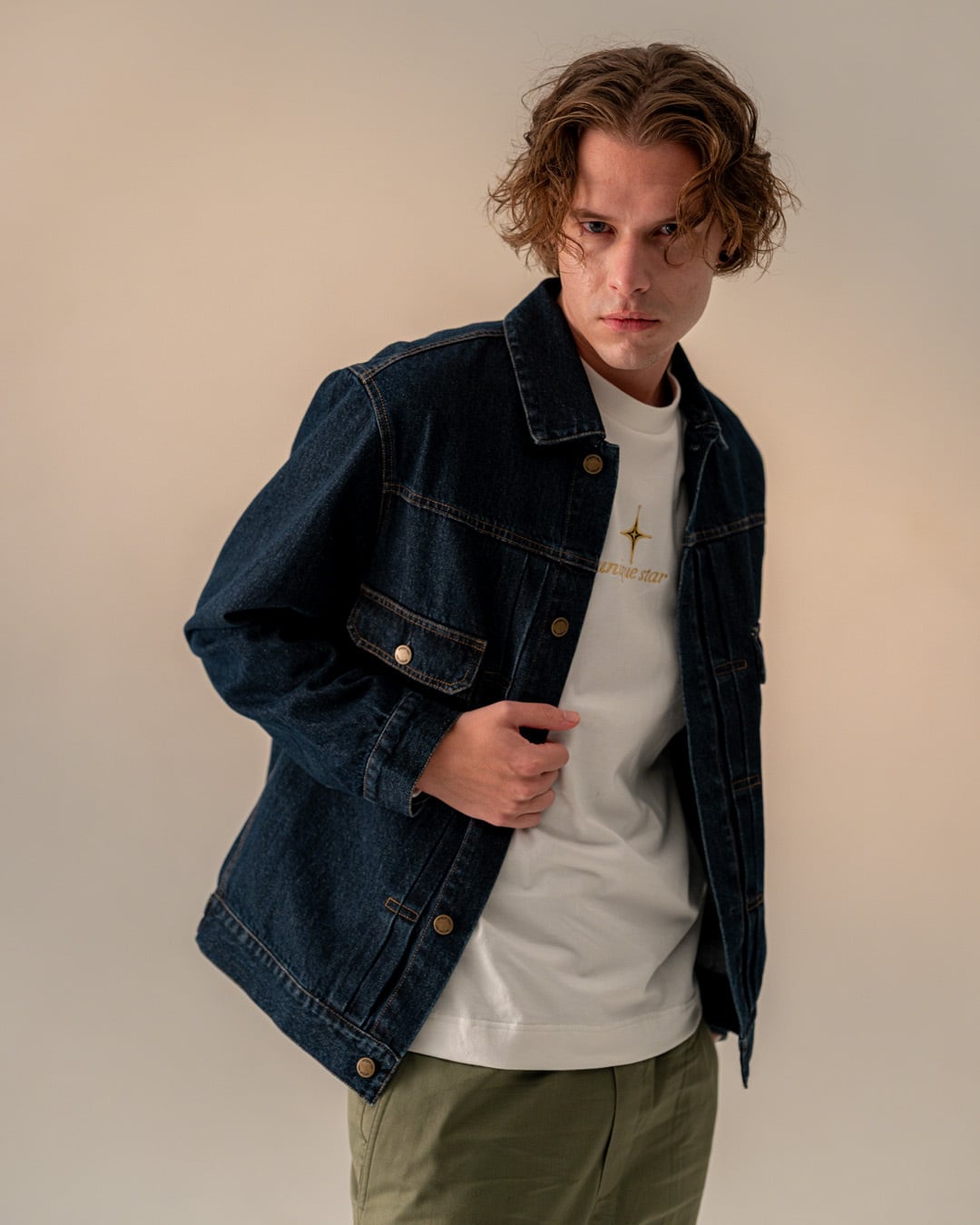 無骨なデニムの素材感と、洗練されたシルエットが共存する、